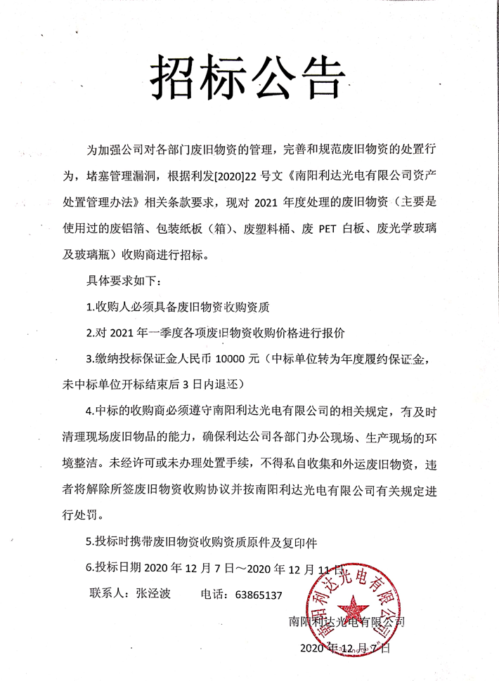 2021年度廢舊物資收購(gòu)資質(zhì)招標(biāo)